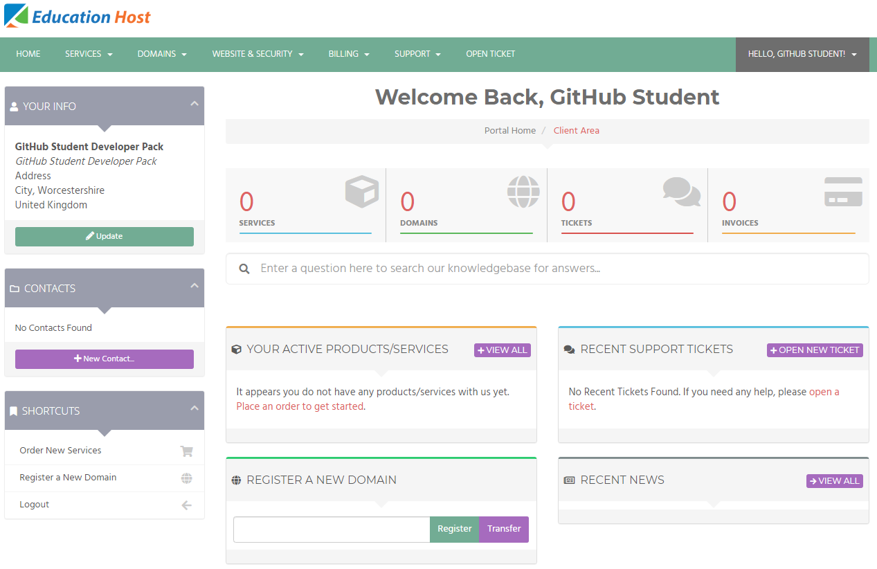 We’ve partnered with the GitHub Student Developer Pack to provide a years’ worth of free Web Hosting on our Designer package. In a nutshell, you get access to space/bandwidth and features to host your files and websites on our platform.